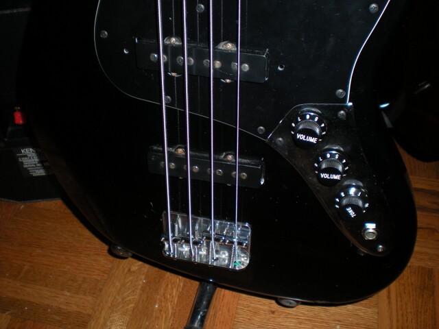 In this case, it’s a Mexican Fender Jazz Bass my friend picked up for a little over $200. I’ve never bought into the American vs. Mexican vs. Chinese/Japanese Fenders. I have a squire telecaster that is essentially identical to the American version. The neck is the difference – mine is ash as opposed to maple with rosewood fretboard. It has all new electronics, and now there is nothing that sounds like it. Typically a four string, Mexican Jazz Bass runs anywhere from $500 to maybe $750. So, $200 isn’t bad. And as I said, It’s tough to tell the difference. I build, repair, and play the things so I know from whence I speak. [Update: Squires are, in fact, not a fender product per se. The difference, other than the cheap hardware, is the scale is slightly shorter, making it impossible to use Fender parts, like a neck or bridge (for a telecaster)]