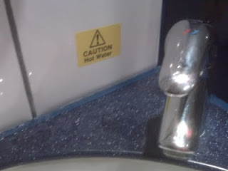 | These idiotic warning signs were everywhere – Hot water comes out here, Duh. |