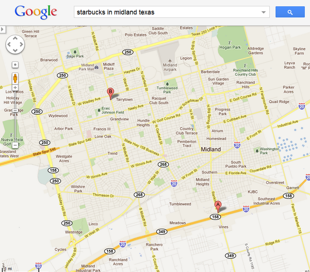 Having traveled a fair amount through east Texas I wasn’t surprised at Midland, which on first glance wasn’t much different than any other small town in the southwest. Once there in the downtown area, one thing became painfully apparent. There was nowhere to eat. A downtown dry as toast, devoid of the normal mom & pop places or even chains. I’m guessing some of the office buildings had cafeterias. To make it more spooky, I’ve been all over the country and in every place I’ve been you can’t swing a dead cat without hitting a Starbucks or a McDonalds. When I hit google maps, I found two Starbucks- way out of my way. Astonishing. Maybe this is a result of the common sense culture displayed by nearly everyone I met. Why spend two bucks or more of coffee when we have a pot right here for free?