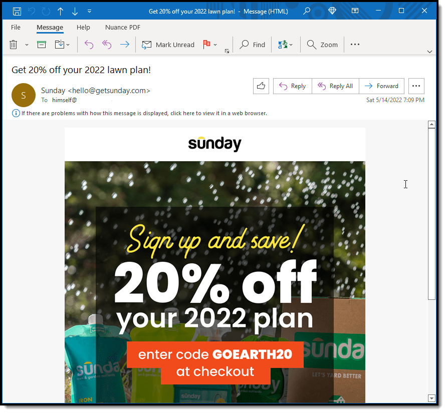 I get it’s in my email. But when I watch youtube, it comes up repeatedly. When I watch Amazon, I get it. Damn ad is all over the place now. Even on the radio. Wonder if they just blew out advertising down here because it’s getting to summer.