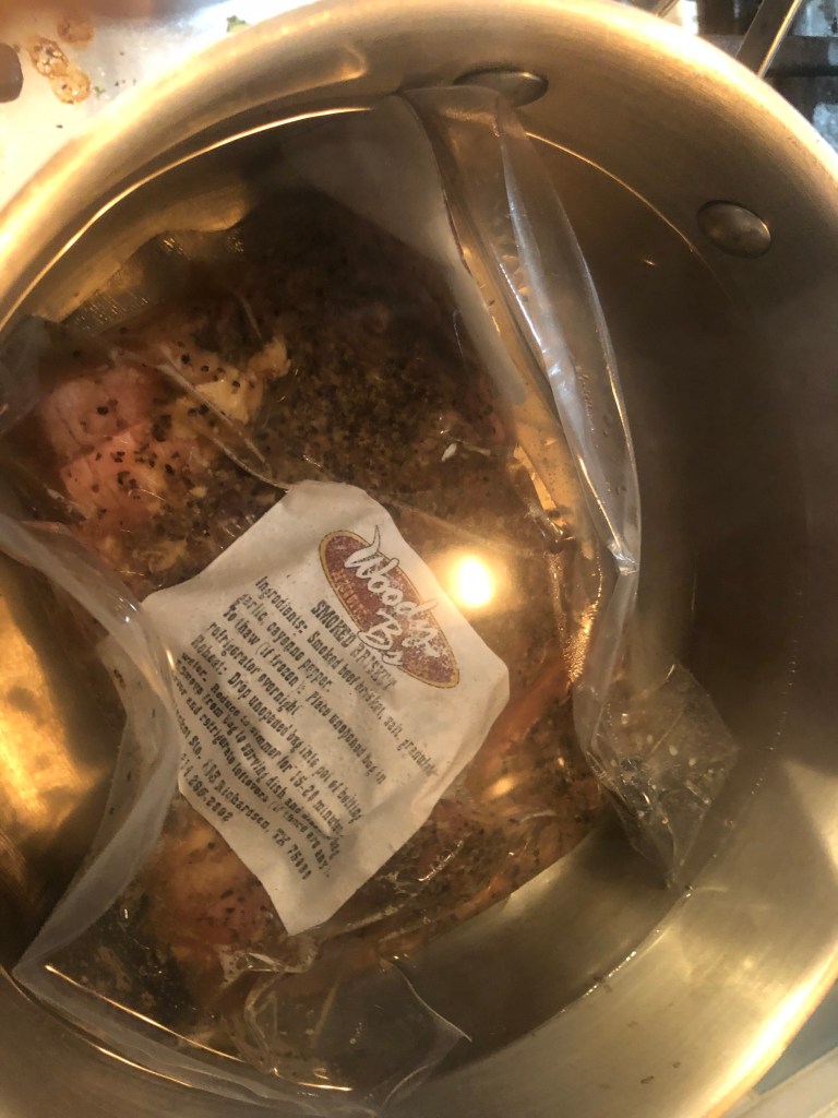 Then you have Woody B’s. He’s actually a friend of mine. Everything the man makes is over the top – the meat, the sides. But his model is different. He caters, and he also vacuum seals and refrigerates. That way, you bring it home and heat it up Sous Vide style.