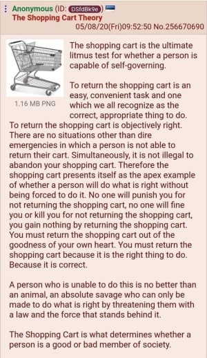 But the WalMart near me? Fuggeddaboutit. Carts everywhere. And just not in the lot, discarded at the bus stop, or up the street, even in my alley a block away.