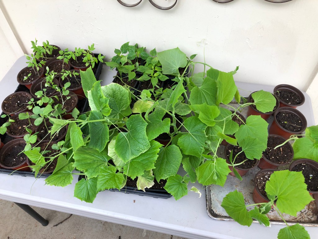 I split them up a few weeks ago. Some went on the sunny window sill near my office (those are the really big ones) and the others went in the sunroom under a lamp. Regardless, I have enough to risk it putting them in early. I have way more than I need. I’ve been keeping them outside this week, in partial sun. Next week, for a few days I’ll put them in a sunnier spot. Then into the garden they go.