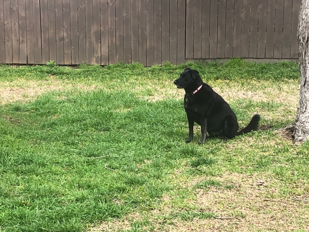 She’s content to watch me sweat, while she waits for the squirrels to screwup.