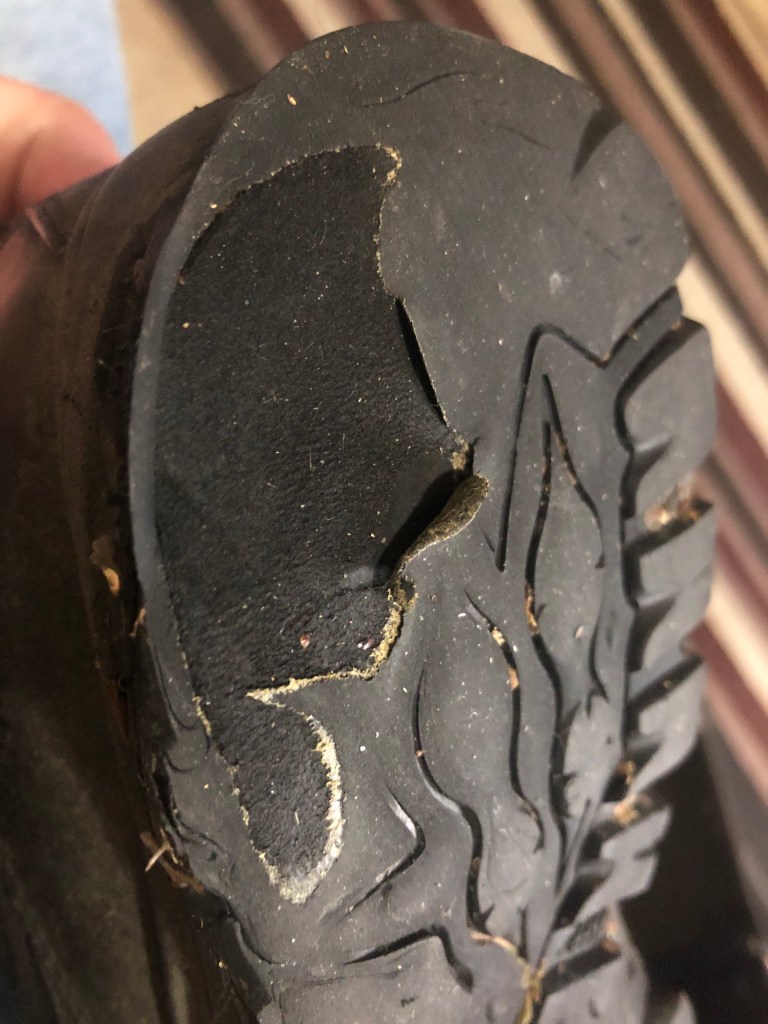 Never thought to look at the soles. To be fair, I put a lot of mileage on these when I was far heavier and all that mileage was on concrete sidewalks (and a commercial kitchen – I wear them when I’m cooking at Church).