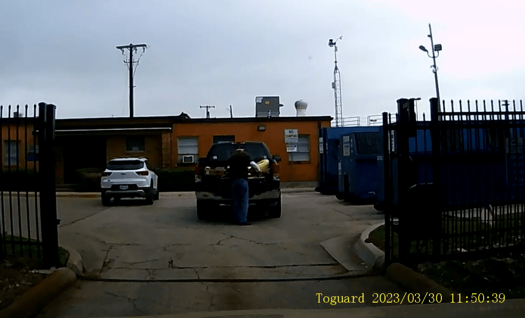 The image doesn’t do scale justice. He’s parked in maybe 15′ from the entrance. You have to squeeze by him to the left, and park to the left of the white car, then walk around his truck to get to the bins. Here’s the rub, had he pulled up 30′ to the curb, his tailgate would be 2-3 steps from not one, but two bins.