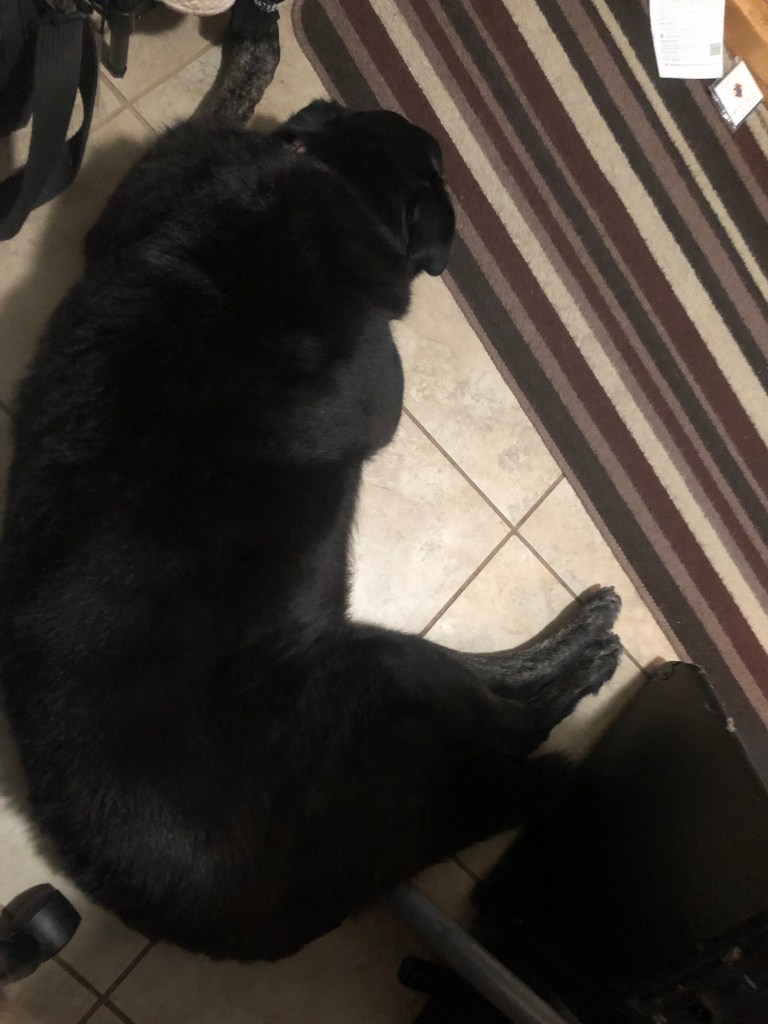We also had a bit of a thunderstorm. Which meant Aria was trying to crawl as deep under my desk as she could.