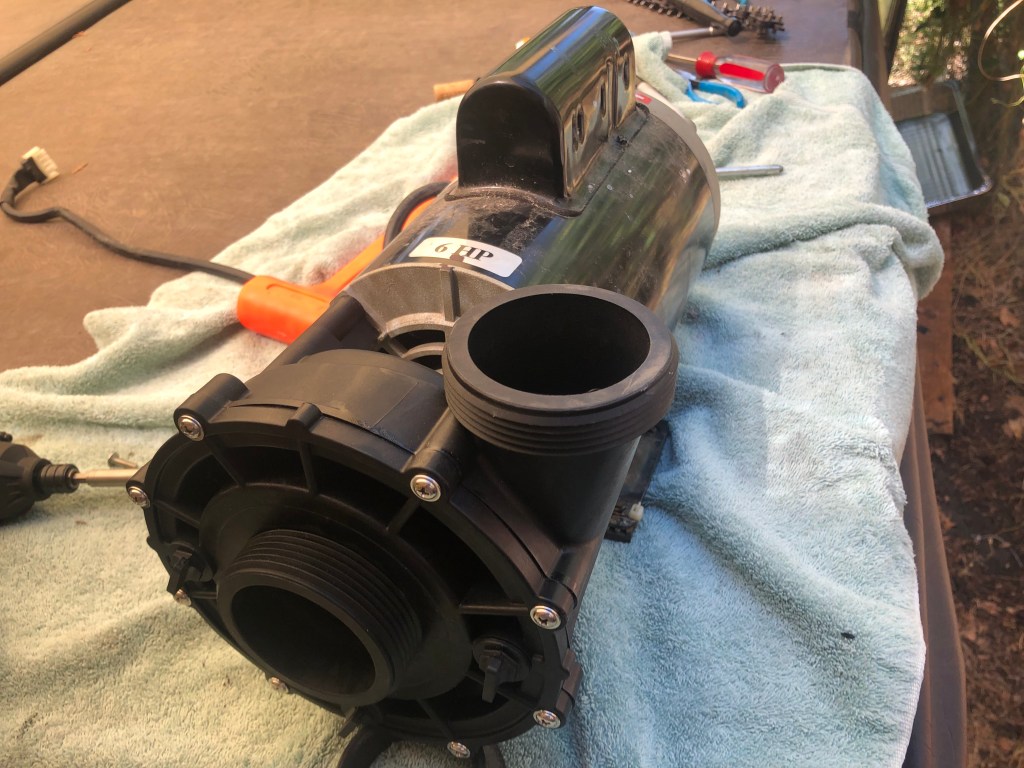 Unfortunately, by the time I saw the leak from the pump to the motor shaft, the bearing for the motor had already started to seize. New assembly… $350 bucks. It’s a Jacuzzi, 7-person model.