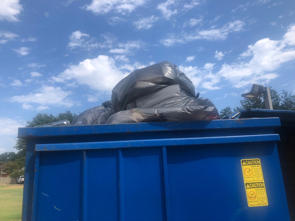 Once a month we have a pancake breakfast at the Church. It generates a fair amount of garbage. My crew handles the ‘front of the house’. So we take out the trash. If the breakfast follows another event, the dumpster will be full. I pride myself in being able to chuck the bags on top with one pitch. Behold: