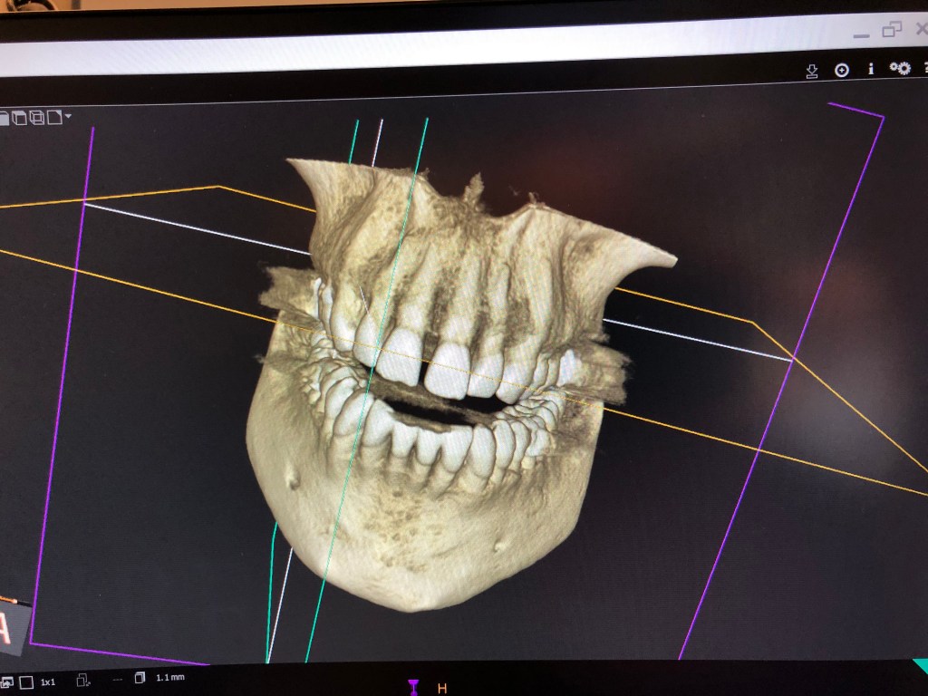 In a “Pulpless” tooth? No nerve… no pain so… why all of a sudden is there pain with pressure? New dentist taps on it and my eyes almost pop out. “This tooth is cracked AND abscessed.” X-ray confirms… in fact, it’s damn near tunneled it’s way into the sinus cavity.