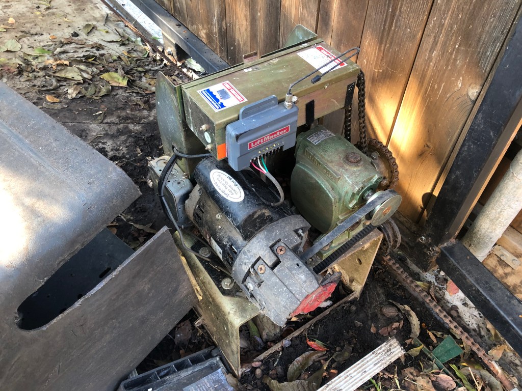 Some wiring, some rough weather velcro later it was working again. Before I leave on Friday, I’ll sink some angle aluminum and fix the cover where they can’t lift it. They really are thick. Whatever they were chasing went under or between the gate and the fence.