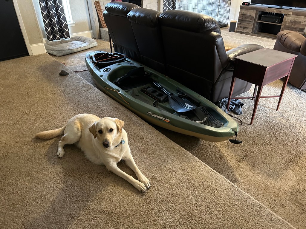 If you tip the Yak up on edge, it will have less of a footprint and you will gain floor space. 🙂 Keel to the back of the couch to preserve the spirit of the decor. This will also mitigate accumulation of cast off fur in the cockpit. Or perhaps even finding Winston himself deciding that it’s a cool place to curl up for a snooze.