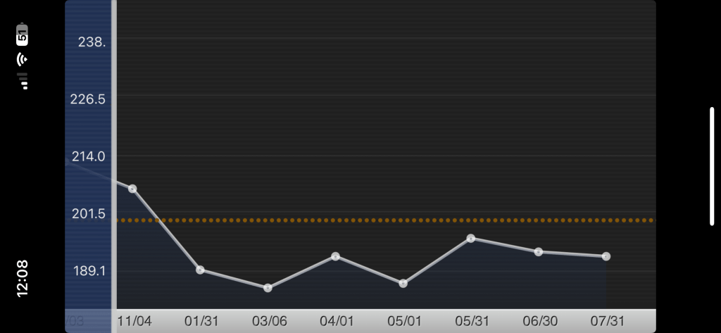 All in all, I’ll take 192 all day since I haven’t been as diligent with my diet. I’ve eaten out a bit more last month than usual. I’ve started tracking my intake, and I think I don’t have much to fret about. As I write this, it’s getting to be dinner time. My calorie count so far has been 1060. I have the app set at 1500, which is probably wrong, since I’ve passed my target. That count includes two small dark chocolate bars I had this afternoon. With an hour beatdown of a bike ride, it shows I have 760 to left in my budget. I won’t make that. I’m not all that hungry now, and probably won’t be later. I’ll probably have soup when I return later.
