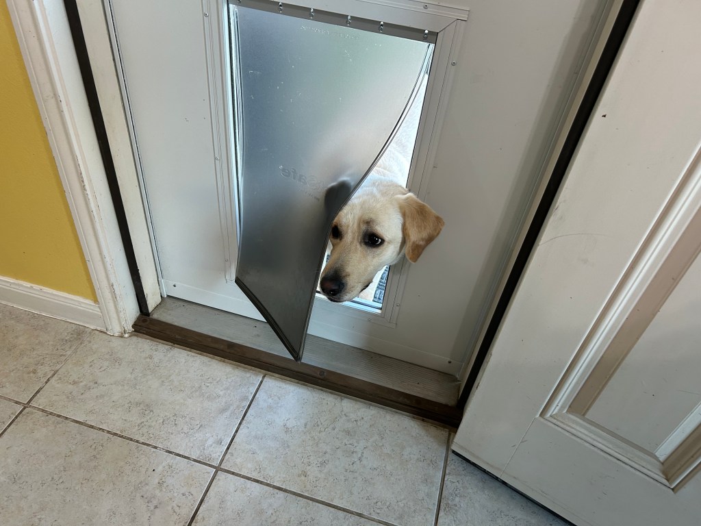 Winston checks to see if the evil vacuum is gone.