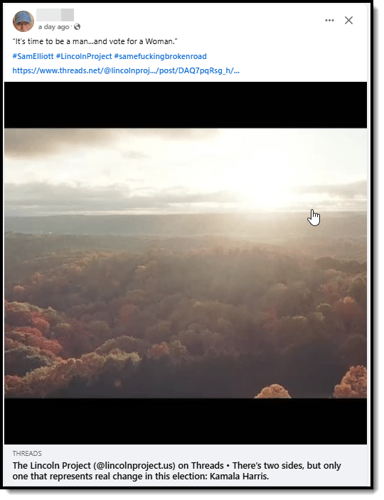 The Lincoln Project proving everything in PanEm is fake and gay. BTW, I know this dude. He’s been made fat being part of the military industrial complex. And real change? What, pray tell, will she do different that she didn’t do in the last four years? I’mma send him a pussy hat (although I wouldn’t be surprised he doesn’t have one) and some Midol.