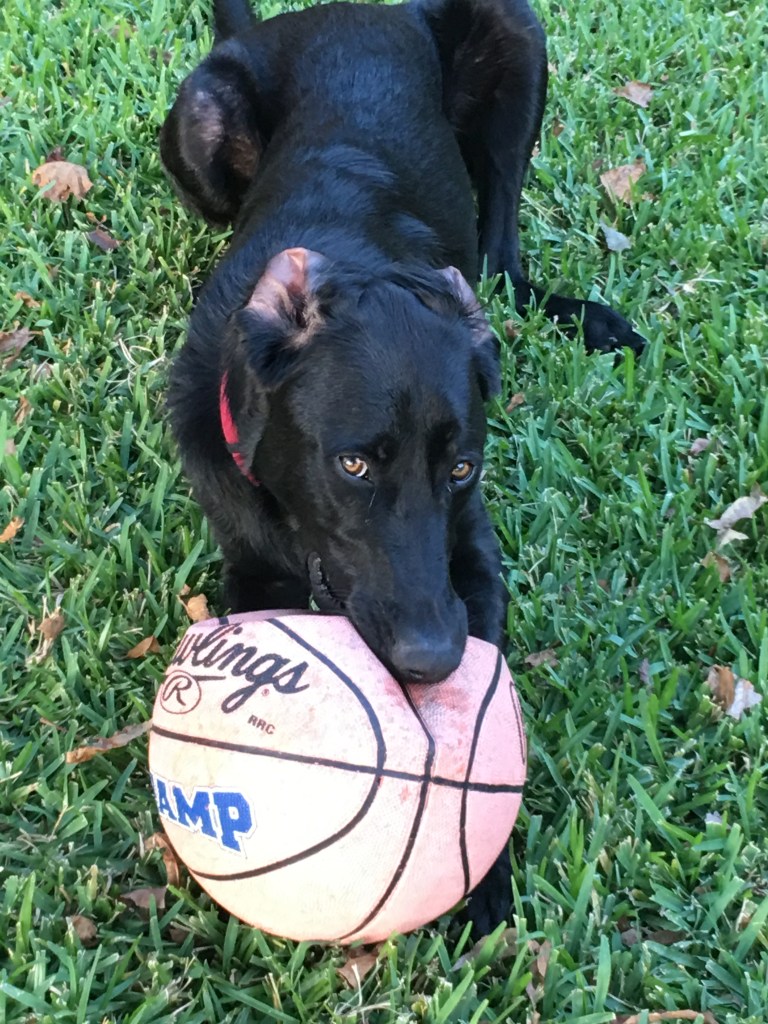 I had a big ole Boxer named Tucker that eventually learned to hole a basketball in under 3 seconds. So, I got him the “Almost Indestructible Ball”. The size of a basketball, but hard molded plastic. He would chase it on the deck and SLAM it with his paws with such force it would impact the 2 x 2 uprights with such force the would pop off the structure.