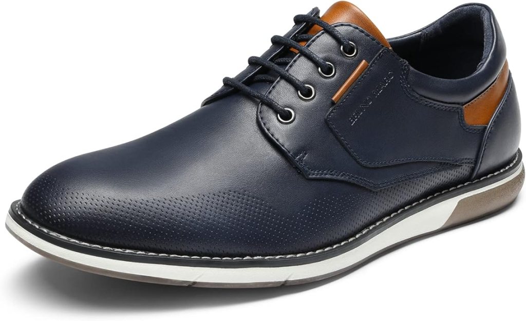 A lot of the guys were dressed stupidly. High water, tapered pants, with a blue sportscoat or an actual suit, either with dumb shoes. A few months ago I bought some Bruno Marks “Business Formal Derby Sneakers.