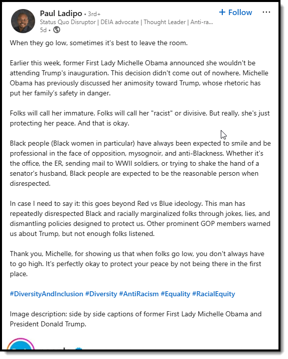 I’ve seen half a dozen so far gobbing my feed on LinkedIn, a place where this thing manifestly doesn’t belong. Always a black guy, always a puffed up stupid title.