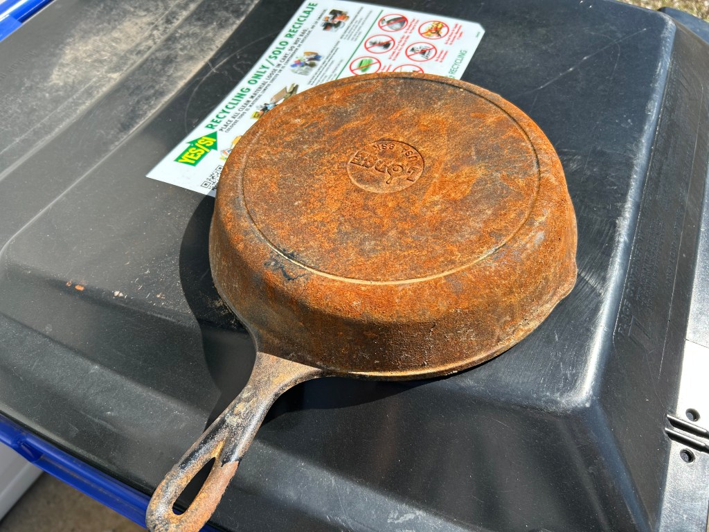 I’ve refurbed cast iron before. But I thought I’d look at some youtubes to see how others do it. Man, what a mess. Most use a vinegar/water mix to eat the rust. Some spray, some soak. Then, to remove what seasoning is left, they use oven cleaner and a trash bag, which causes a gawd-awful mess. The way some of these experts carry on, you’d think they were restoring porcelain.