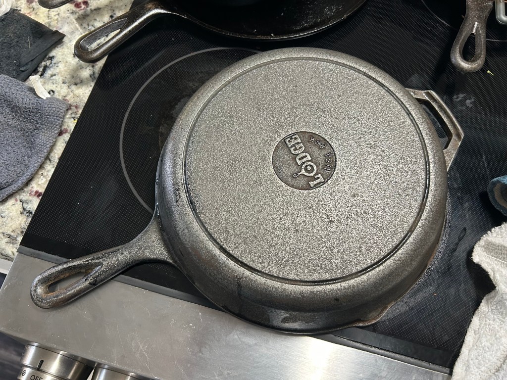 That’s a Lodge 12″ cast iron pan. About $25-$30 on Amazon. I’m not too proud to leave that kind of dough in the side of the road. I only have one of these in this size, and I use it for nearly everything.