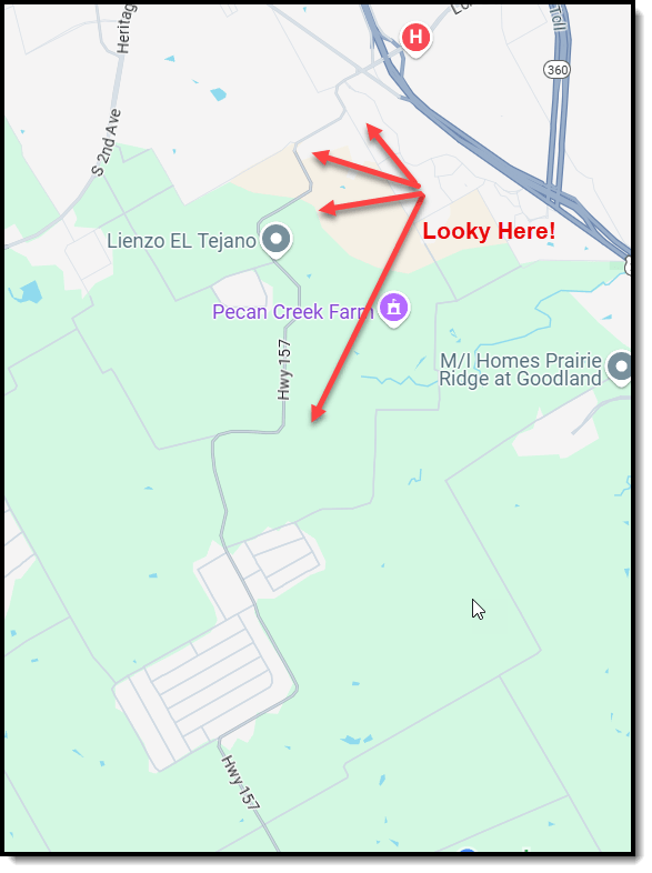 So I headed out. My route was straight south on Main Street, until it turns into FM157 – LoneStar road. Why? This: