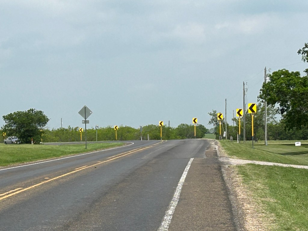 At Maypearl, I fixed that problem. Opened the vent window and raised the windshield a bit. Pressure equalized, there was very little buffeting. Those corners post a 30 Mph limit. I was hitting them at 50-60. The speed limit on the road itself is 55. Heh..