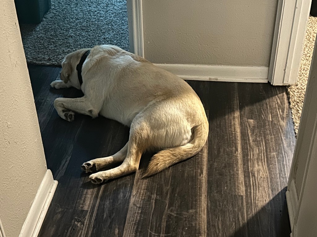 In the closet. At first, I worried a bit about this. Then I realized that I took down her crate sometime ago. That was her happy place for her whole life. But she would rarely go in it, and I don’t have the room in this house.