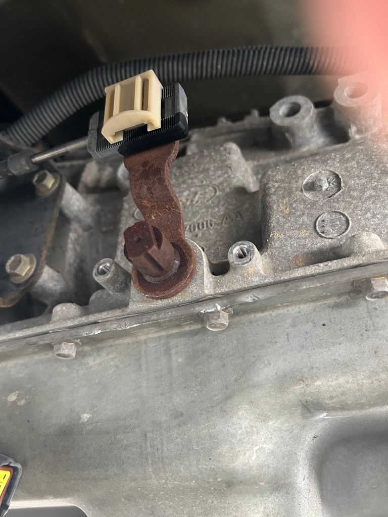 On this truck, it’s a module held on my two bolts on the driver side of the transmission. You don’t even need to lift it, there’s room enough to scoot under. Seems to me, down there with the water, ice, and slush is a stupid place for such a thing. But it’s what it is.