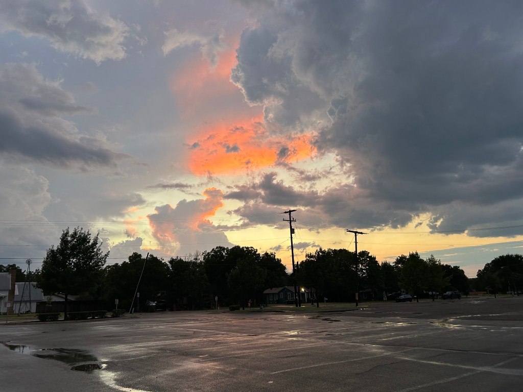 I would almost bet that at one point behind you there was a rainbow. It’s been “warmer” than usual here in SW FL. We get sunsets like that a LOT here as it’s “Rainy Season”. LOTS of rainbows too.
