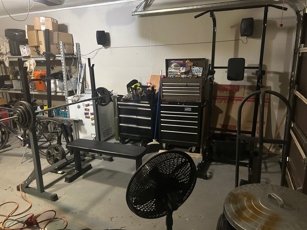 The big improvement is the speakers, tied to a meaty Bluetooth amp. I was carrying my Bose Bluetooth speaker in when I lifted. It’s nice to have tunes built in once again. That, along with a general cleaning up of the pigsty that was there has made life awesome.