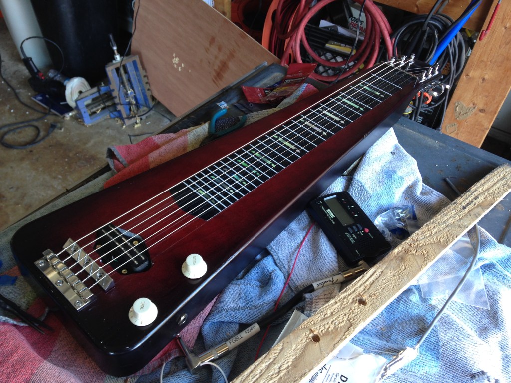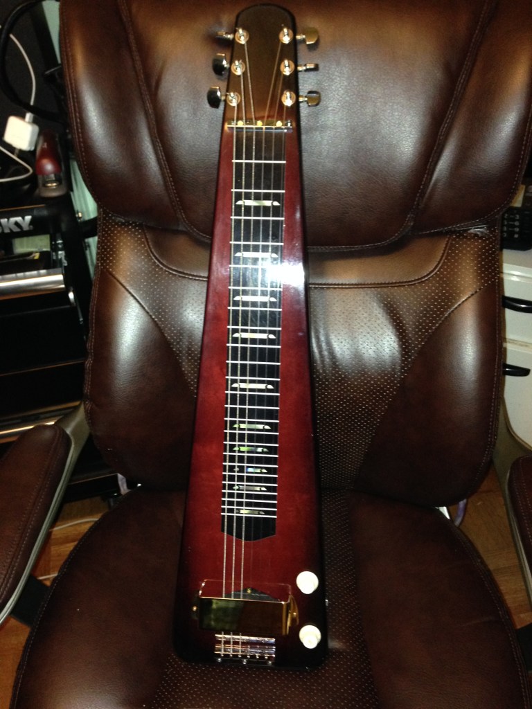 I can’t remember where I got the pickup or where it came from. All I remember is it was spare, as were the Gotoh tuners. I had to buy a bridge setup and the decal for the ‘fretboard’. I believe it was setup in “G”.
