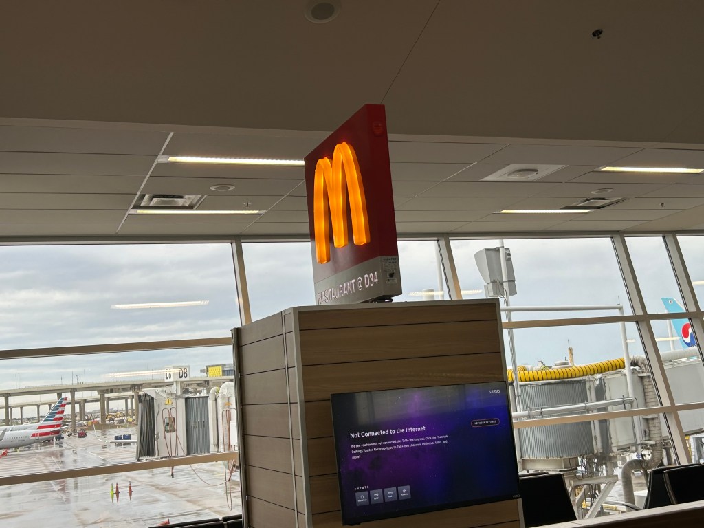 A McD’s can be found at D34. This was at D7. For those unfamiliar with DFW, that’s a good 1/2 mile walk. A long way for an eggamuffin. You’ll pass many options before you get there.