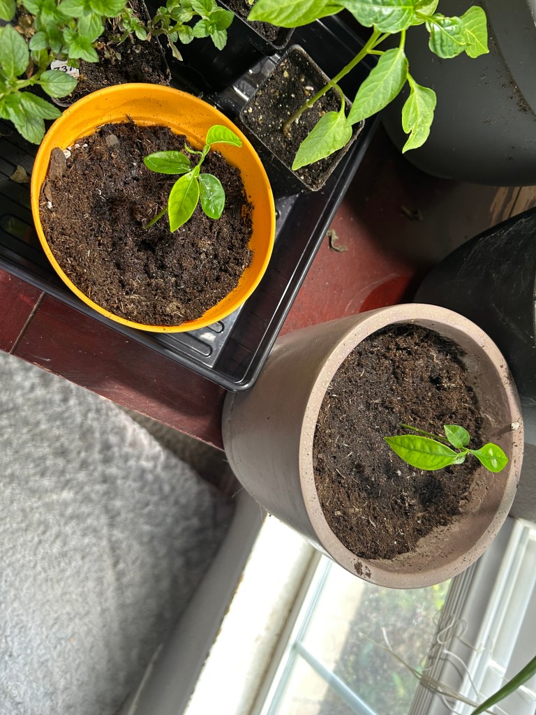 So she took the seeds, planted them, and gave everyone a plant. Pretty cool. My pot actually had two planted close together. It got pretty battered on the plane. So I separated and repotted them. They appear happy. They’ll be happy here in the warm environment.
