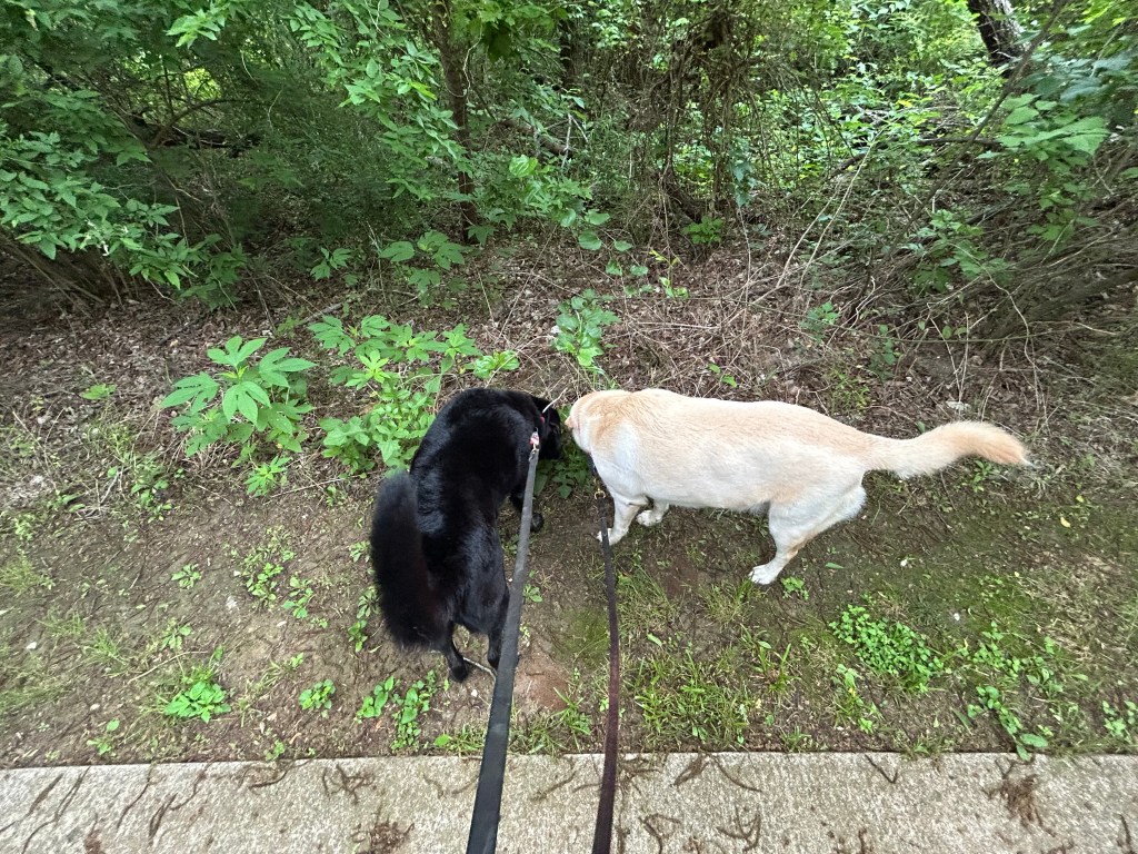 There were a number of folks taking advantage of the cool morning to walk. More than a few walking dogs, which was a blessing. My two need to spend more time around strangers and dogs they don’t know. They were really well behaved, both mine and the others.