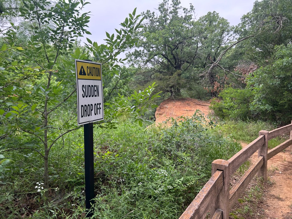 It’s a decent size hill that’s a struggle on a bike. Not so bad, but still tough on foot. I don’t think the dogs have ever had to go up a hill. BTW, it’s quite a drop off that ledge. I’ve seen more than one dumbass on the other side of that fence near the ledge. It’s slopes down and is pretty loose dirt. I don’t need to see the edge, to be honest. Nor do the dogs.